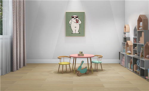設(shè)計(jì)上,親膚系列地板也不遺余力的滿足人居需求,低10°的啞光設(shè)計(jì),使地板表面形成漫反射,柔和視覺(jué),更好的保護(hù)人們眼睛,符合嬰兒眼睛發(fā)育標(biāo)準(zhǔn);自然柔和的低飽和色彩設(shè)計(jì),無(wú)論搭配任何風(fēng)格家居,都能和諧自然。