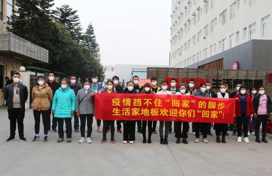 2月23日早上7點(diǎn),生活家地板員工返崗專車緩緩駛?cè)牍敬箝T,由公司中山總部派出的專車,跨越1300多公里,從外省接回的首批員工26人順利抵達(dá)工廠。此次包車接回的返崗員工大部分來(lái)自貴州思南縣和石阡縣,屬疫情較低風(fēng)險(xiǎn)區(qū)。