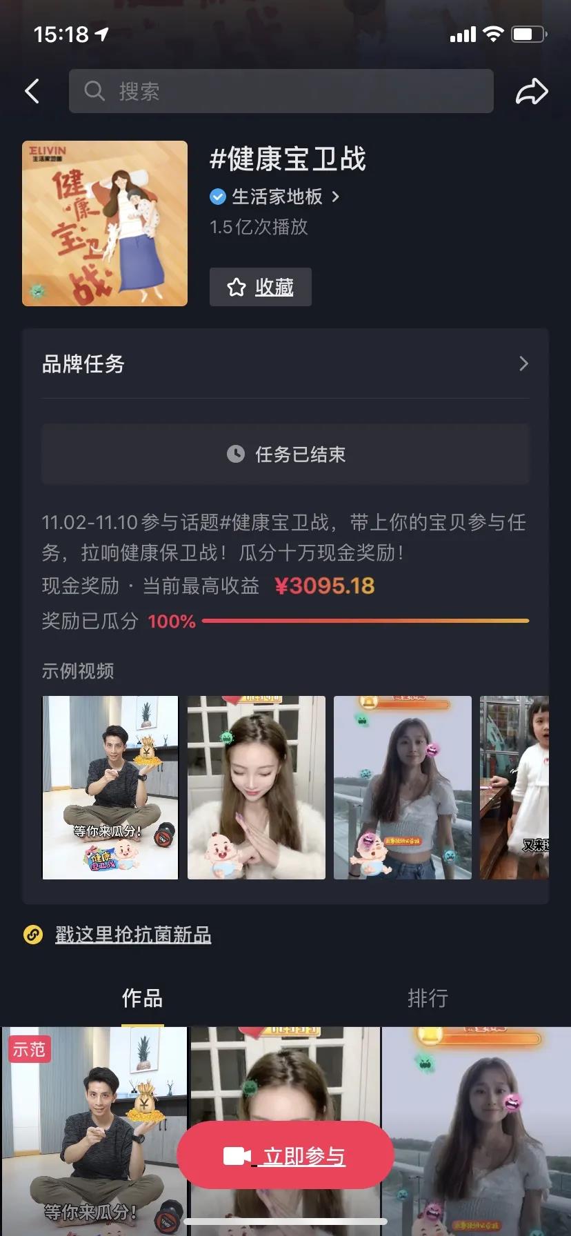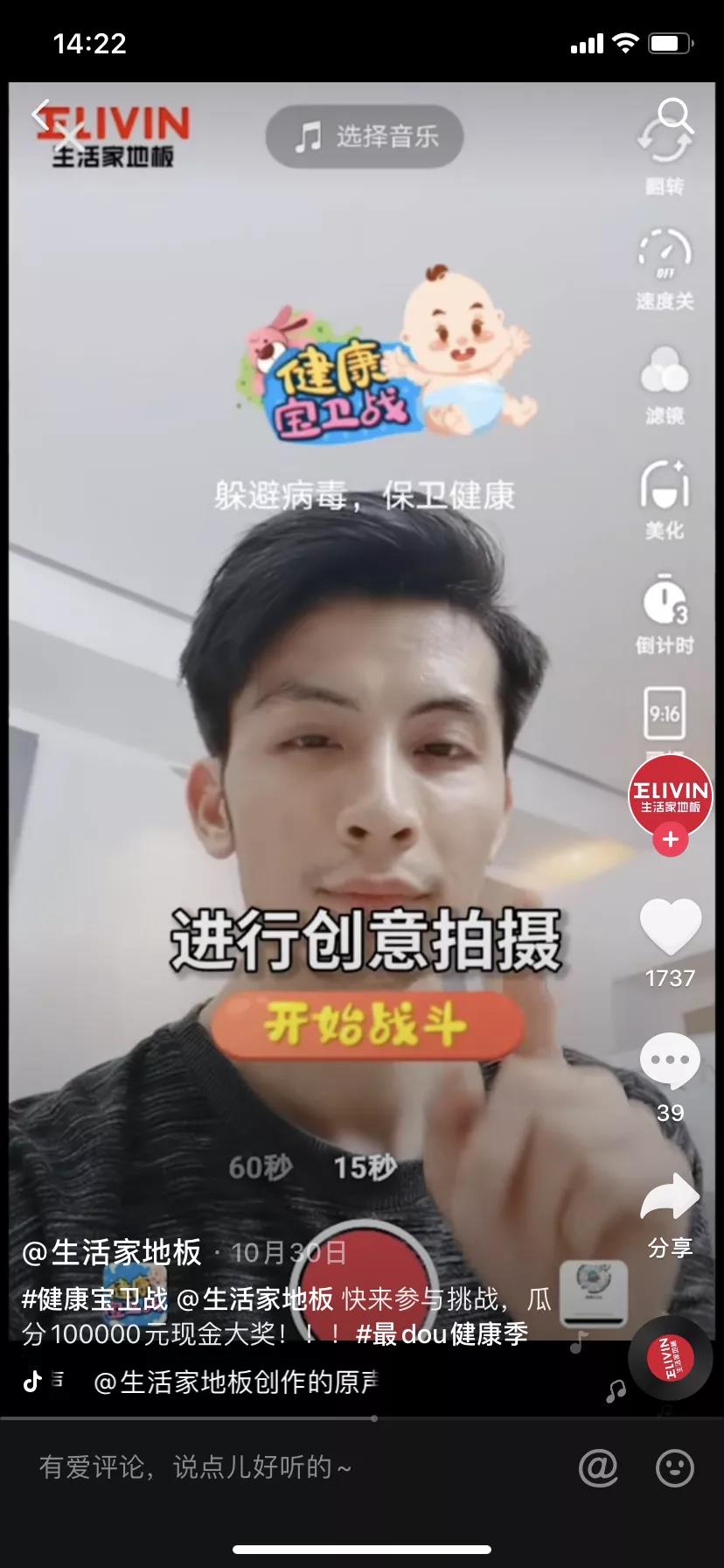 憑借著創(chuàng)意玩法、AR貼紙、達人助力,生活家地板#健康寶衛(wèi)戰(zhàn) 抖音挑戰(zhàn)賽參與視頻數(shù)超2.2萬,播放量超1.5億,全方位引領(lǐng)健康風(fēng)潮。
