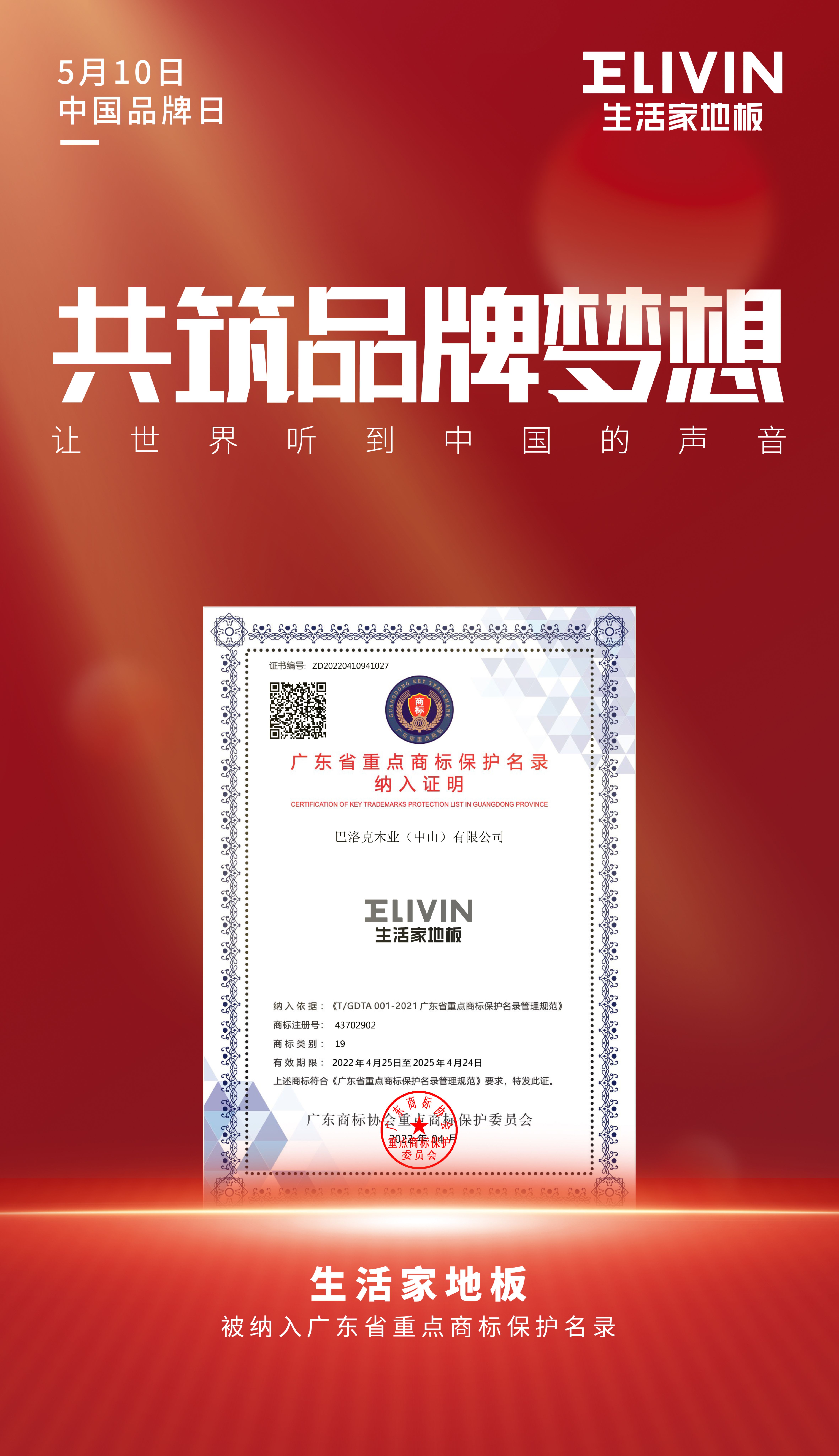 生活家地板經(jīng)過多年的品牌沉淀,以“致力成為全球最優(yōu)秀的地板服務(wù)商”作為長期愿景,堅守產(chǎn)品品質(zhì),鑄就品牌強勁實力。近日,生活家地板榮膺2022中國家居綜合實力100強品牌“生活家地板”商標被納入廣東省重點商標保護名錄,這是社會各界對生活家地板的認可,同時也彰顯了生活家地板品牌價值和企業(yè)實力。
