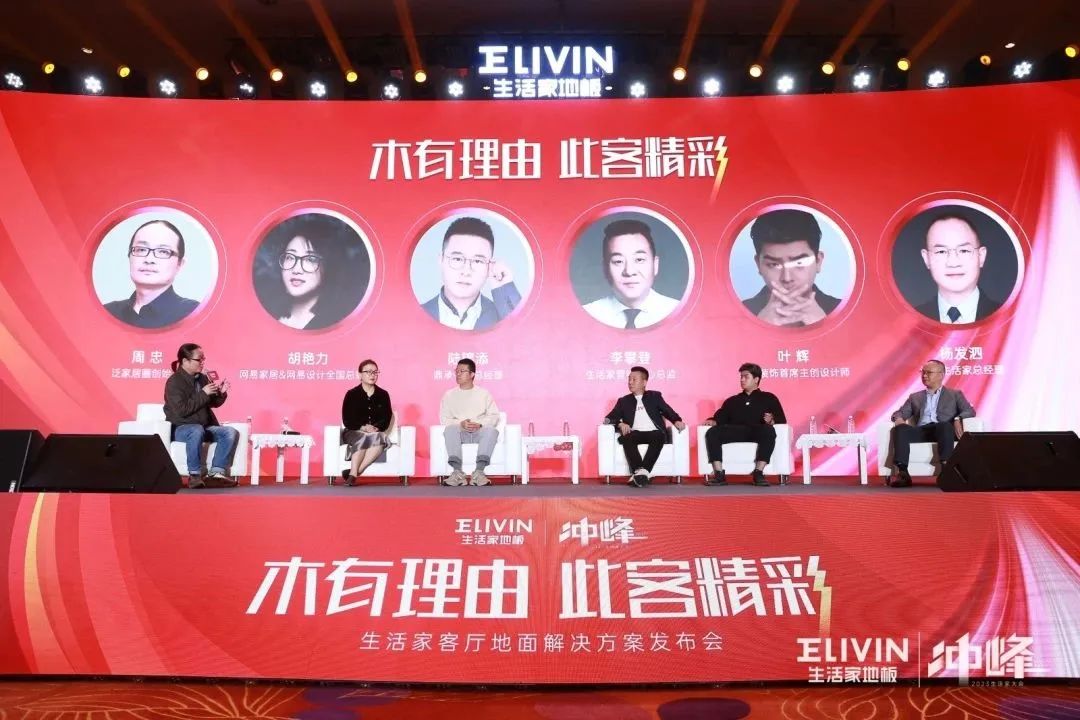 網(wǎng)易家居&網(wǎng)易設(shè)計全國總編輯胡艷力、泛家居圈創(chuàng)始人周忠、生活家地板營銷中心總監(jiān)李攀登、尚層裝飾首席主創(chuàng)設(shè)計師葉輝、鼎承傳媒總經(jīng)理陸錦添、江蘇生活家總經(jīng)理楊發(fā)泗齊聚一堂,從各自的專業(yè)角度探討客廳地面材料行業(yè)發(fā)展趨勢,他們表示對生活家客廳地板的未來發(fā)展之路充滿信心。