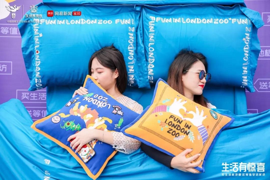 此外,在活動(dòng)現(xiàn)場(chǎng)的另一側(cè),以生活家地板和夢(mèng)潔家紡為主題的拍照打卡網(wǎng)紅裝置也大受歡迎,站立著拍一張?zhí)稍诖采系恼掌?,展現(xiàn)睡覺時(shí)的囧態(tài)。原來(lái),今年上半年,生活家和夢(mèng)潔家紡這兩大家居圈內(nèi)的老友官宣達(dá)成年度戰(zhàn)略合作伙伴,在今年超級(jí)新品日期間,生活家發(fā)起買多少地板送多少夢(mèng)潔家紡的優(yōu)惠活動(dòng),讓消費(fèi)者享受下半年家裝優(yōu)惠。